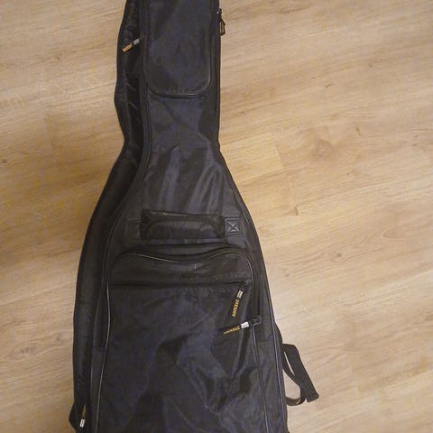 Tyylikäs Rockbag 24”x18” bassorumpulaukku, sisällä pienehkö repeämä, joka korjattu teipillä, täysin toimiva laukku, 20 €
