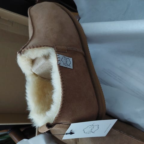 EMUn villavuoriset lampaannahkakengät koossa 38. Tilattu kotisivuilta.
