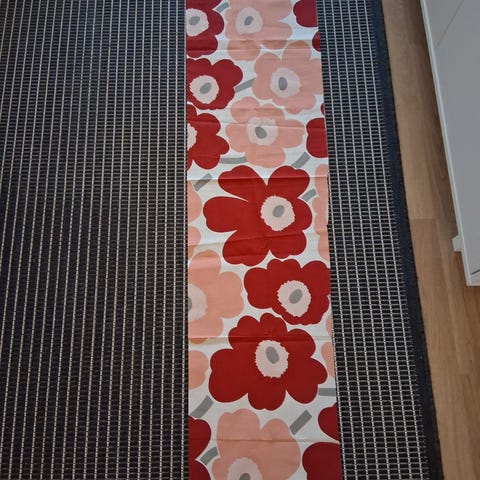 Marimekko punavalkoinen kangaspala Pieni unikko. Koko 144 x 146 cm.