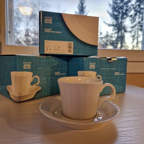 Arabia lumi kahvikuppi ja tassi