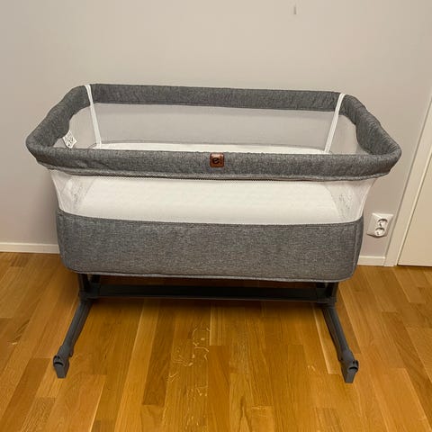 Myydään erittäin siistikuntoinen Emma sivuvaunu-/ensisänky laskettavalla laidalla.
