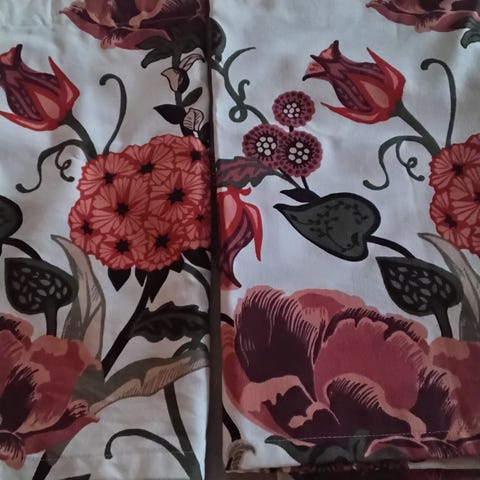 Myydään uudenveroiset, ikkunaan sovitetut, Vallilan hempeät Bellagio kappaverhot 2kpl.