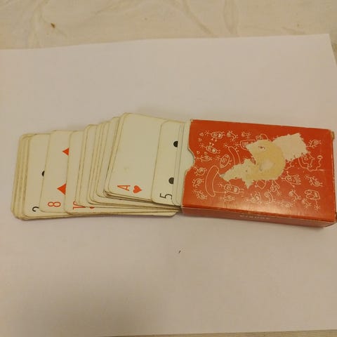 kortit hyväkuntoiset , pahvinen rasia kulunut , teksti myös ruotsiksi