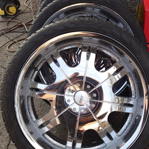 3 hyvää rengasta, 1 huono. Vanteet suorat. Sopii BMW , wokkari jaa muut.