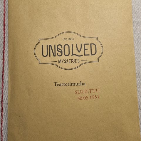 Unsolved "Viimeinen kirje" murhamysteeripeli. Ovh 35€.