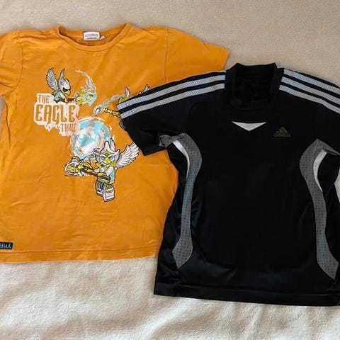 Kuvien paidat mieluiten pakettina. Paitojen koko 128cm, lego-paita koossa 122/128cm. Huppari Nosh, toinen keltaisista uusi ja pitämätön. Nouto Karhunmäestä. Kaikki yhteensä 8 euroa.