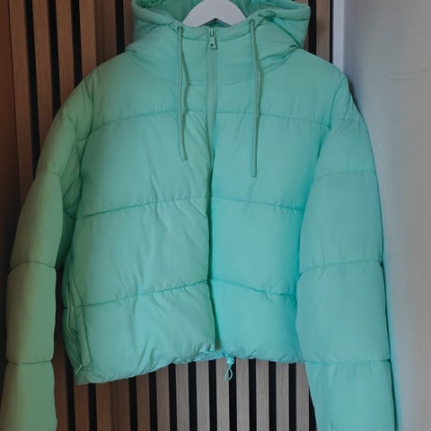 Uusi, tummanruskea hupullinen lämmin takki, hihoissa resorit, vetoketju avautuu myös alhaalta