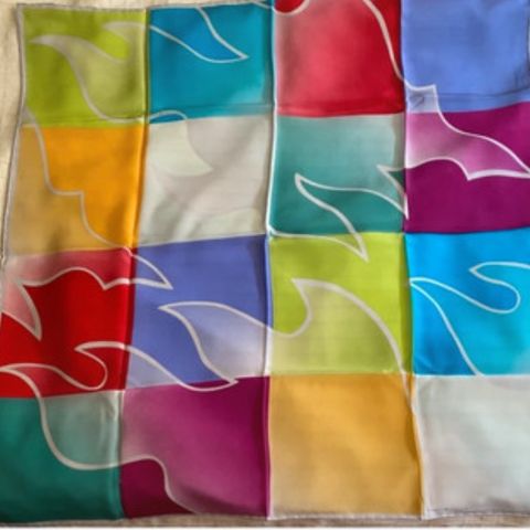 Hyväkuntoinen Marja Kurki silkki huivi. Koko 53x53cm. Ullanlinnasta voi myös noutaa.