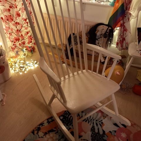 Myydään kiikkutuoli. Istuinosa ja kangas hyvässä kunnossa. Toisessa jalassa koiran hankaanjälkiä.