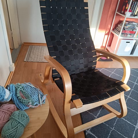 Myydään Tenstarin valmistama kiikkutuoli. Istuinosa ja kangas hyvässä kunnossa. Toisessa jalassa koiran hampaanjälkiä.(Näkyy kuvissa)