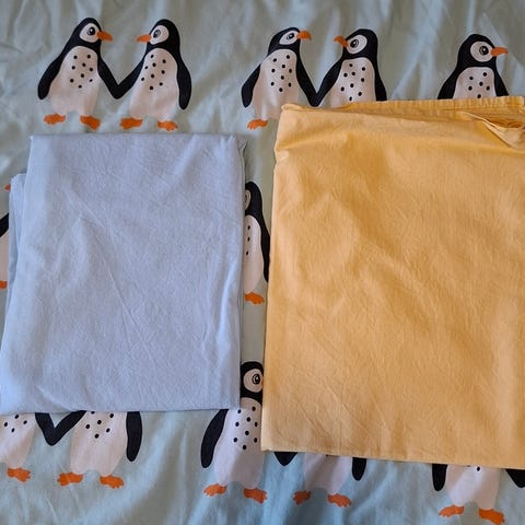 Vauvan lakana ja tyynyliinat.
