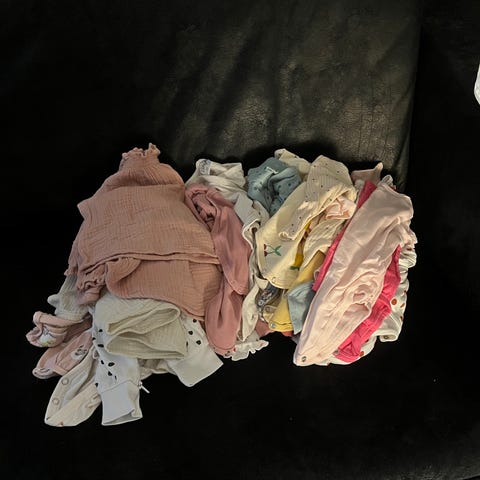 Myydään hyväkuntoinen tyttövauvan vaatepaketti. 2 pitkähihaista bodya, 2 housut ja 1 haalari. Hajusteeton talous.