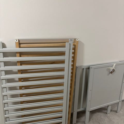 Sänky on tullut meille uutena ja se on aina ollut sisällä koottuna. Sänky on ostettu Tammistossa aikaisemmin sijainneesta VauvaPiste-kaupasta.