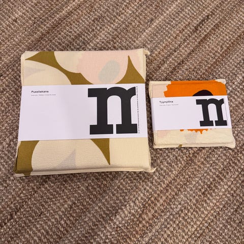 Huom! Tyynyliinat tulee myös mukaan, ostettu erikseen, kun Marimekon pussilakanapaketissa eivät ole valmiina. Uusia nekin, ovat avaamattomassa paketissa.