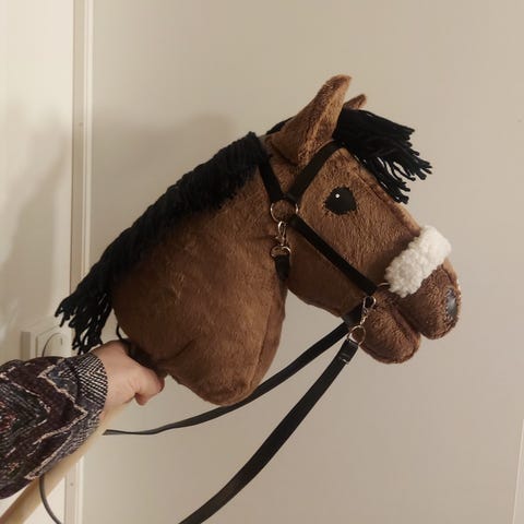 Myydään pienempi keppihevonen ja varusteet. Keppihevonen on ommeltu huolellisesti koneella velboasta tukikankaan kanssa. Yksityiskohdat ommeltu käsin kiinni. Silmät ja sieraimet ovat tekonahasta, korvissa vahvikkeet. Keppihevonen myydään täytettynä ja keppi paikallaan.