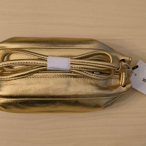Myydään käyttämätön Marimekon hopea-kultainen Karla-laukku. Nahkainen hihna. Pakkaukset tallella, eli kelpaa vaikka lahjaksi.