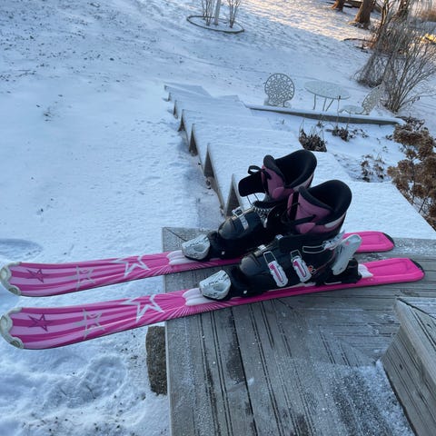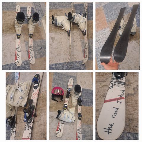Sukset 110cm, monot koko 210-215, lasten kupärä laseilla.