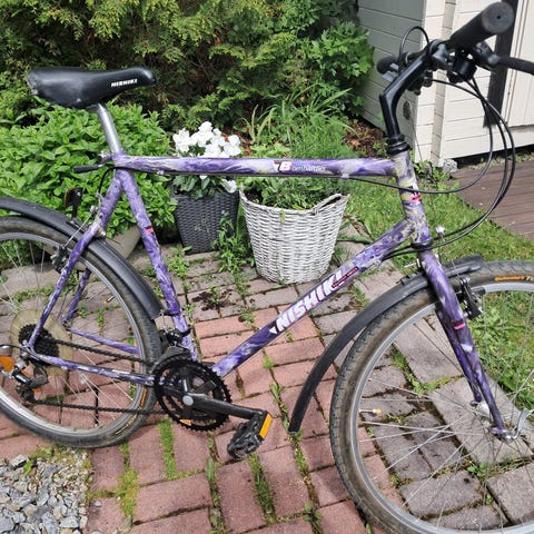 Suomessa suunniteltu ja tehty Tähtipyörä tummansinisellä rungolla. Edessä dynamo, takana merkkivalo, tavarateline, ja lokasuojat. Sopii arkipäivän käyttöön kaupunki- ja maantieajoon. Shimanon seitsenportaiset vaihteet, jotka toimivat tällä hetkellä huonosti. Edessä olisi tod. näk. vaihderemontti. Lähes bränikät renkaat alla. Säilytetty vuosia lähes käyttämättömänä lämpimässä varastossa.