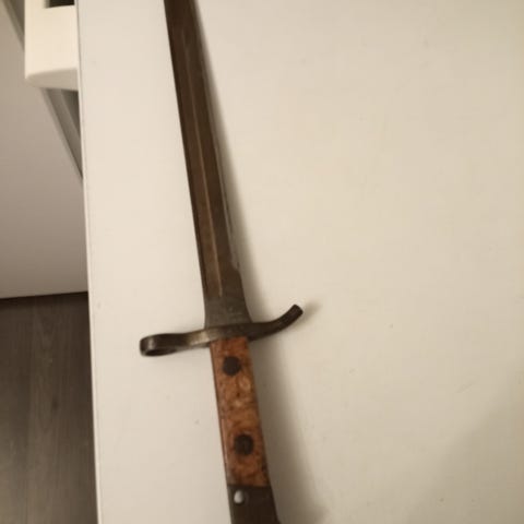Hackmanin valmistama pistin ja sen uritettu tuppi. Kannakkeessa on sarjanumero 74156 ja numero 56. Terän tyvessä lukee Hackman&Co. Hieno tuote keräily- tai koriste-esineeksi.