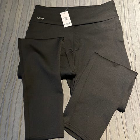 Ihanat Leson lämpöleggsit pehmoisella vuorella ja taskuilla, taskut edessä ja takana. Kokolapussa XXL mutta vastaavat ennemmin XL eli pientä mitoitusta, itselle valitettavasti liian naftit niin jääneet kaappiin. Kunto muuten erinomainen, mutta yhden lankapaon löysin takapuolelta kts.kuva. 77% polyamide, 23% elastane. Lahkeen pituus 75cm, vyötärön mitta 35cm ja venyy tuosta. Koiratalous.