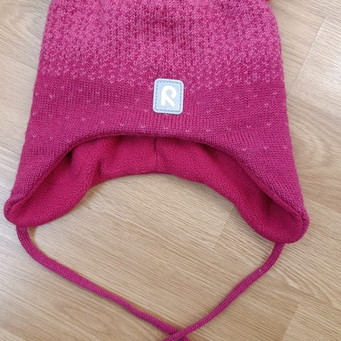Uutena ostettu ja vähän käytetty vauvalla viime talvena. Päällinen villaa ja vuori puuvillaa. Koko 46. Korvien kohdalla tuulisuojat.
