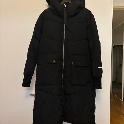 Everest merkkinen, musta hupullinen toppatakki. Takissa on koko 38, mutta malli erittäin väljä, vastaa kokoa 42,L. Vetoketju kiinnitys, korkea sisäkaulus ja tuulisuoja. Taskuissa ulosvedettävä heijastinvyö. Uusi, tuli ostettua liian iso. Hyvä pakkastakki.