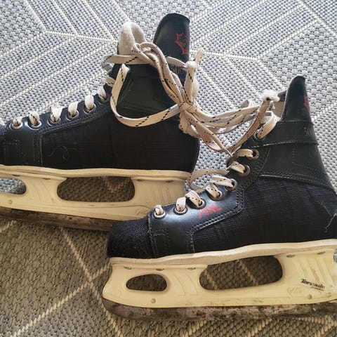 Teroitetut luistimet, sisämitta noin 21cm. Kokomerkintä kulunut pois, arvio 33,5. Nouto Korsosta, Vantaalta.