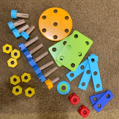 Puupalikoita laatikollinen