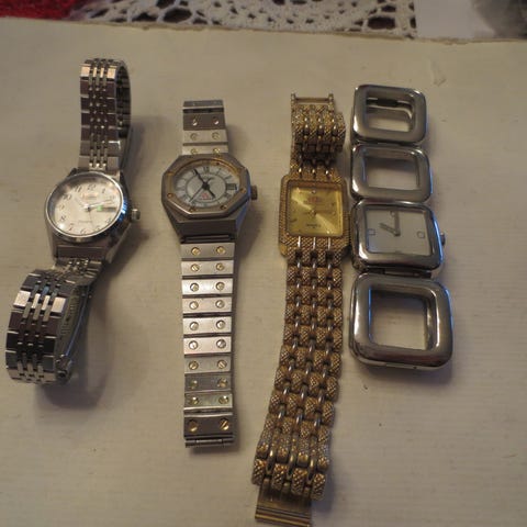 Myydään käyttämättömäksi jäänyt Toijalan terästuotteelta lahjaksi saatu teräs/kullattu Quartz kello uudella paristolla,kellon halkaisija ilman nuppia on n.35 mm. Sekä toimiva miesten Q & Q Quartz rannekello tumman sinisellä taululla ja naarmuuntumattomalla lasilla,kellon halkaisija ilman nuppia on n.36 mm. ranneke alkuperäinen mutta jo huonokuntoinen.Hinta yhteensä, toimituskulut pakettina 7e,myös nouto Loimaalta.