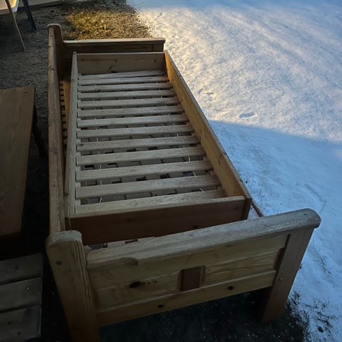 Puinen levitettävä sohva hyvällä säilytystilalla. Patjaa ei valitettavasti ole mukaan.