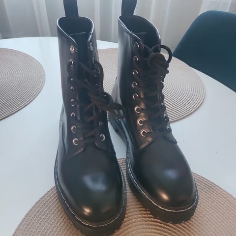 Pari kertaa käytetty, vasemmassa kantapäässä pieni nirhauma sisäpuolella.
