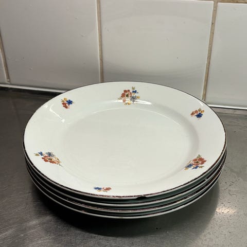 5 kpl Arabian pieniä kakkulautasia. Halkaisija noin 12,5 cm. Kahdessa pieni lasitevika mutta ei haittaa käyttöä. Myydään yhdessä hintaan 12 euroa.