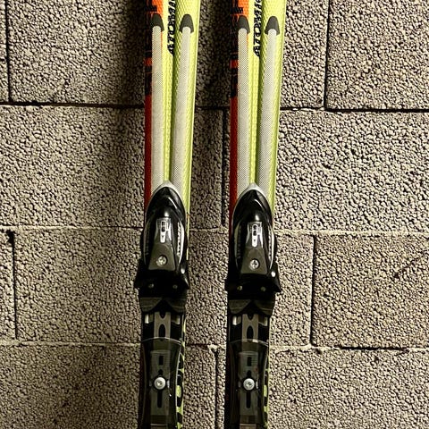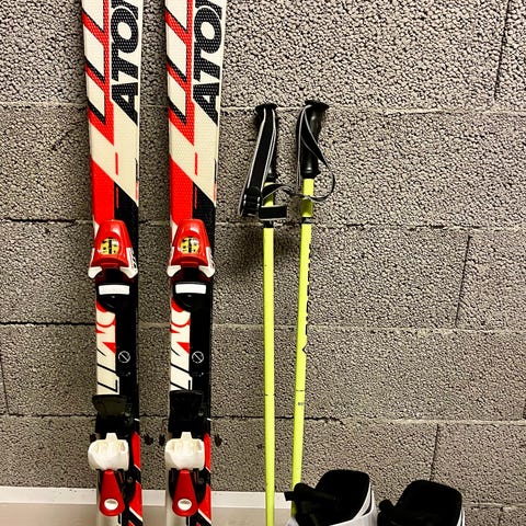 Laskettelupaketti Atomic sukset, pituus 100cm + Head monot koko 34. Sisäpohjallisen pituus 21.5cm.