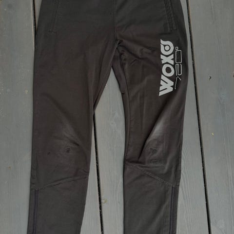 Woxo vk-housut 146, jotka on hyvässä kunnossa. Siistit, mutta toisessa polvessa 1cm nirhauma, joka ei ole läpi.