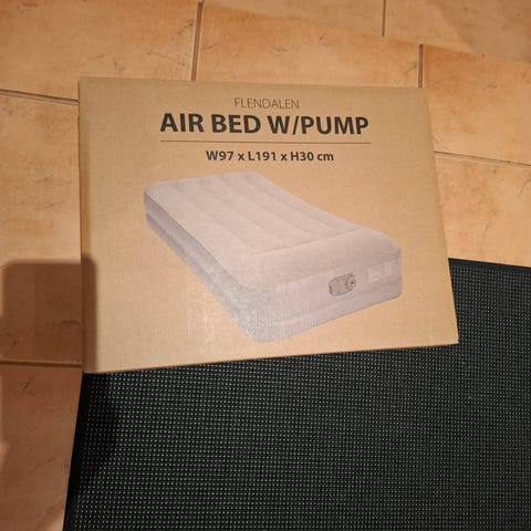 Hyväkuntoinen ilmapatja varavuoteeksi tai vaikka lasten leikkeihin. Täyttö/tyhjennys moottorilla.