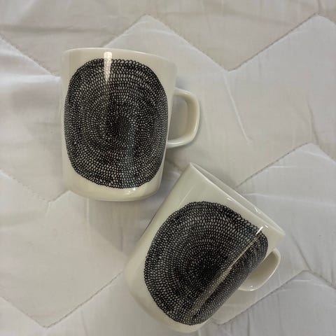 Vallilan Jalostaja-mukit. Nämä ovat arvonnassa voitettu ja käyttämättömät. Uniikit mukit siis!