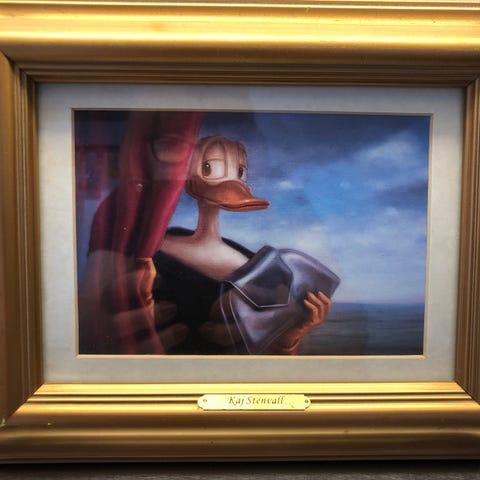 Painokuva 19x23,5 cm. Kehyksessä teksti Kaj Stenvall. Kehyksessä pientä käyttökulumaa.