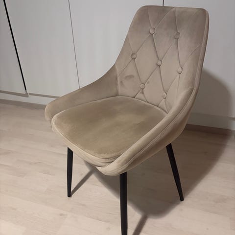 Tuolit ovat hyväkuntoiset, mutta joitain käytönjälkiä löytyy. Muutamasta kohdasta on lähtenyt langat purkautumaan (ks. viimeinen kuva) ja istuinosat ovat vähän painuneet, jolloin istuimen pintaan tulee ns. ryppyjä/uria. Tuoleissa on noin 2 cm paksu vaahtomuovipehmuste, joka joustaa istujan painon alla, mikä aiheuttaa osaltaan tätä painumista. Yleisilmeeltään tuolit ovat kuitenkin oikein siistit.