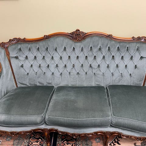 Myynnissä punainen rokokoo-tyylinen samettikankainen sohva. Runko puuta. Hyvä istua. Samanlaisia on näkynyt kohtuullisesti myynnissä joten tuskin aitoa antiikkia. Istuintyynyjen kangas on hieman kulunut ja pieniä jälkiä on jonkin verran. Vain nouto Heikkilänkankaalta (tarvitsee isomman auton tai peräkärryn/pakun). Hinnasta saa tinkiä. Sohva pitäisi saada uuden tieltä pois. Kissatalous.