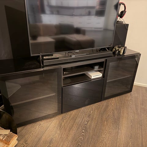 Ikean Bestå runko ja Doorien ovet, peitelevyt ja pomppusaranat. Sävy grain. Muuten kuin uusi, mutta oikeassa päädyssä pienet kolhut(näkyy kuvassa 3).