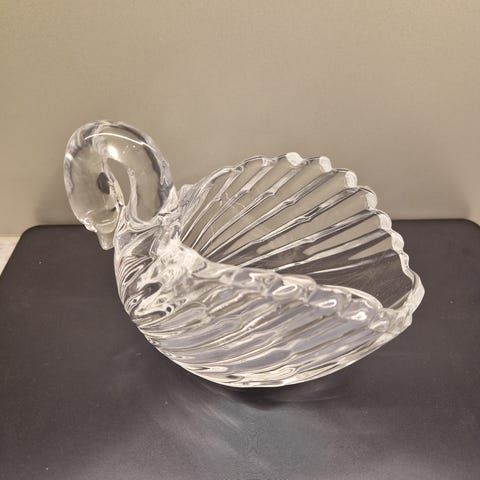 Todella hyväkuntoiset kristalliset joutsenfiguurit. Toisessa tarra paikallaan, jossa lukee, että se on 24% lyijykristallia ja merkki Lucyna ja, että se on valmistettu Puolassa, toisessa tarrassa lukee hand made.