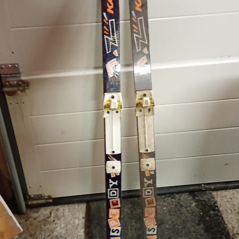 Annetaan mäenlaskuvälineitä. Stigassa suksissa halkeamia, mutta ajelee. Keltaisista kahvat irronneet.