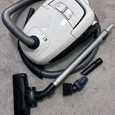 Käsiosa ei enää täydellisesti kiinni varressa, joten siihen lisätty teippiä. Näin ei ongelmaa imuroidessa.