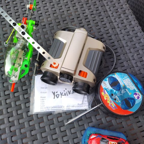 Toimii kolmella AA-paristolla, paristoja ei tule mukana.