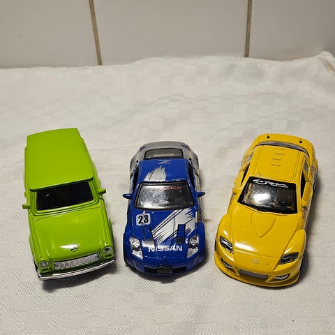 Paljon leikittyjä metallisia pikkuautoja 5kpl