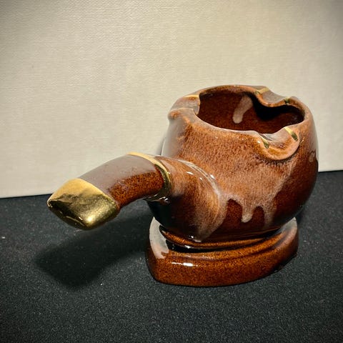 Harvinainen ja ilmeikäs vintagetuhkakuppi, koiranpään muotoinen. Todennäköisesti 1950-luvulta. Kauniit lasitteet ja käsinmaalatut yksityiskohdat. Alkujaan tuhkakupiksi tehty, mutta toimii mainiosti myös koriste-esineenä. Sopii sisustukseen, keräilijälle tai lahjaksi koirien ystävälle.