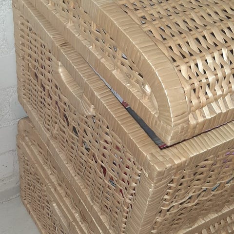 Persoonallinen, pieni säilytysarkku. Soveltuu myös istumiseen. Laadukkaat sisustuskankaat. Vankka, vakaa, hajuton.