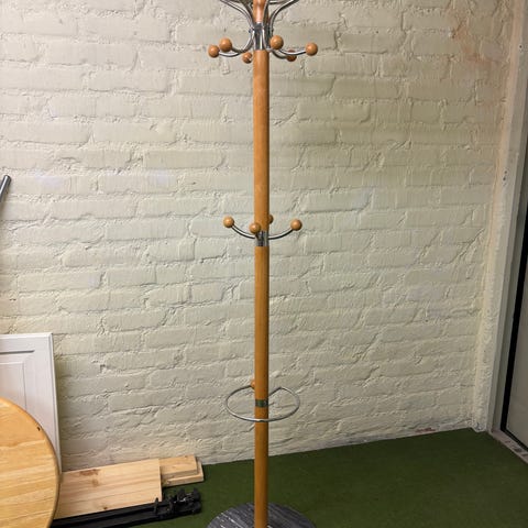 Puinen naulakko, jossa meriaiheinen maalaus. Koristeessa on köysi ripustamista varten ja se koostuu useista pystysuorista laudoista. Värit ovat sininen, valkoinen ja luonnon puun sävyjä.