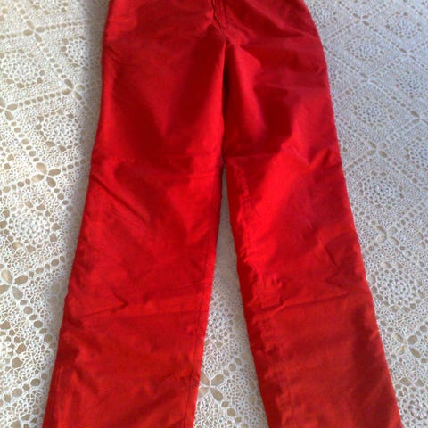 Siistit vähän ohuemmat toppahousut, sivuilla vetoketjutaskut.