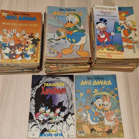 Aku Ankka Rokkikukot 1&2 sarjakuva. Sivut ja kannet ehjät, yläosassa pieni naarmu ja lyijykynän jälkeä.